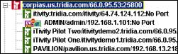 iTivity iManager stores its list of iServers in a .ncn file. You can add all of your iServers to this file, or you can have multiple files with different sets of iServers. By default, the iManager loads its last used ‘.ncn’ file. One good strategy is to store the .ncn file in a network directory. This allows all users of iTivity iManager to share the same iServer list. A key feature of iTivity iManager is the Windows Explorer-like interface in the left pane of the main window. When you connect to an iServer, the list expands to show all iAgent computers currently connected to that iServer.